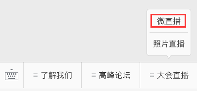 2、进入大会微官网,点击【微直播】,直接在线观看大会直播;如下图所示;