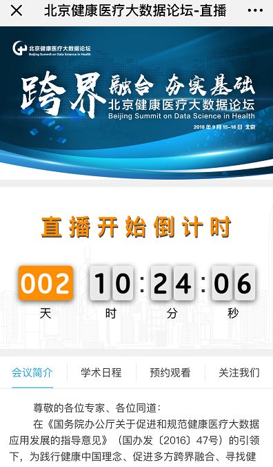 “北京健康医疗大数据论坛”诚邀您观看本次大会直播,提前预约,精彩不容错过!